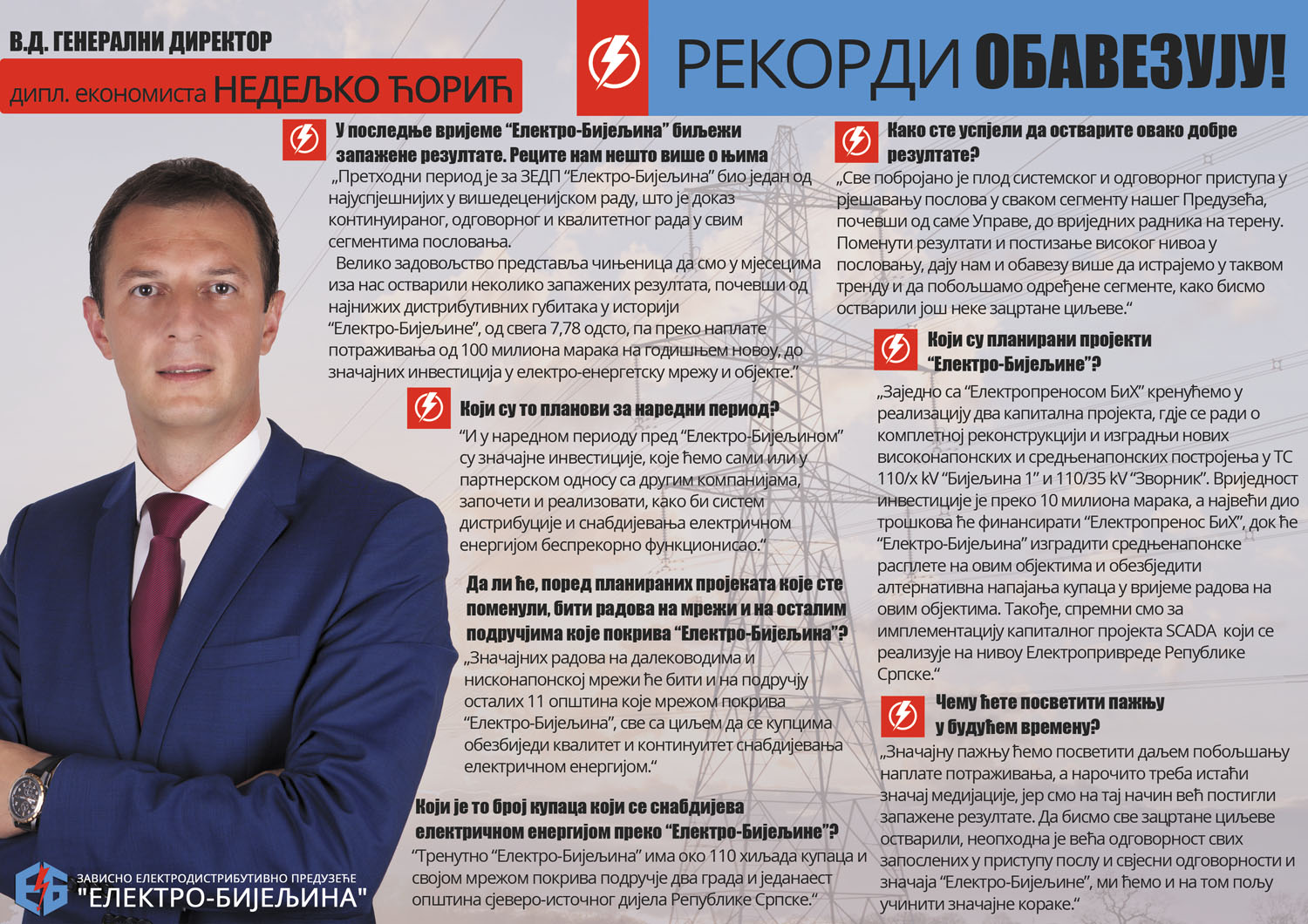 „Претходни период је за ЗЕДП “Електро-Бијељина” био један од најуспјешнијих у вишедеценијском раду, што је доказ континуираног, одговорног и квалитетног рада у свим сегментима пословања.