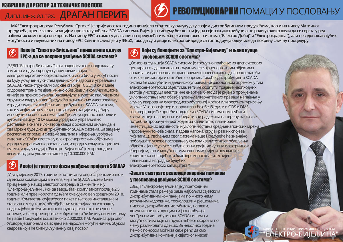 МХ ''Електропривреда Републике Српске'' је прије десетак година донијела стратешку одлуку да у својим дистрибутивним предузећима, као и на нивоу Матичног предузећа, крене са реализацијом пројекта увођења SCADA система. Ријеч је о систему без кога ни једна свјетска дистрибуција не ради уколико жели да се сврста у ред озбиљних компанија ове врсте. На нивоу ЕРС-а само су два зависна предузећа имала неки вид таквог система (''Електро Добој'' и ''Електрокрајина''), али незадовољавајућих могућности и неувезаних на нивоу ЕРС. Слична слика је и у ФБиХ, тако да су и двије електропривреде са тог подручја одлучиле да покрену сличну процедуру.